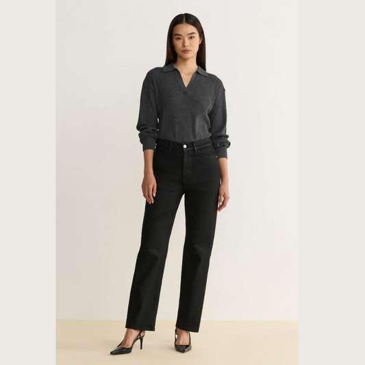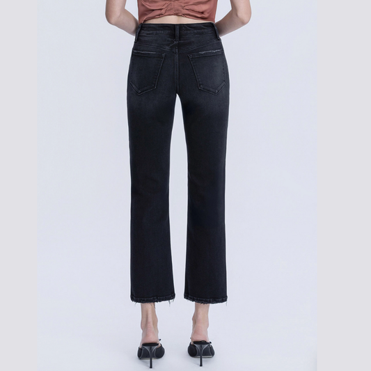 Brooke Mid Rise Black Straight Denim (28")