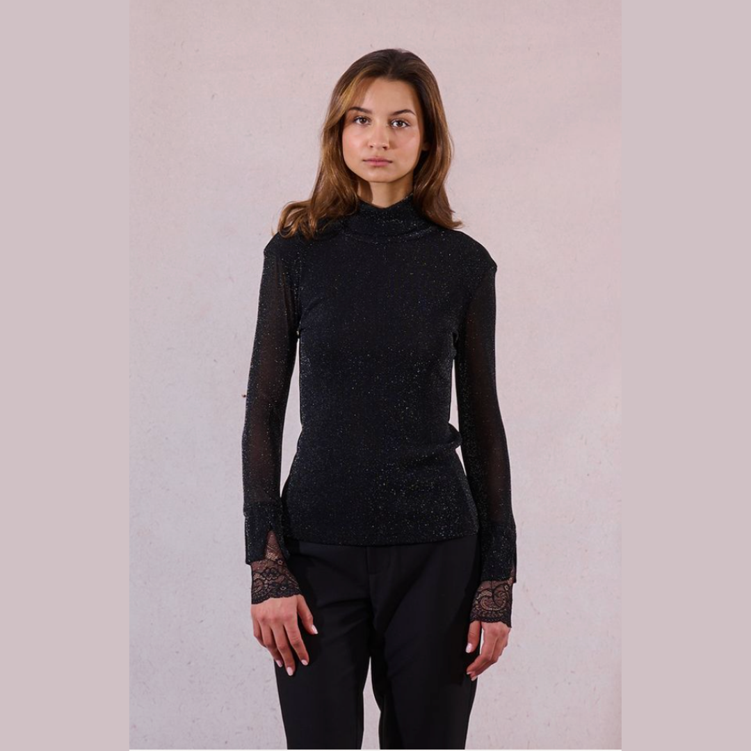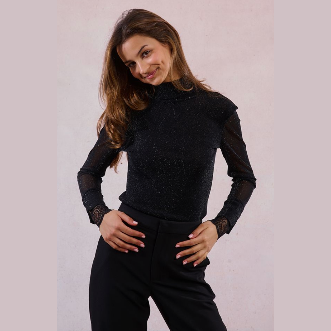 Elevate your wardrobe with the All the Details Blouse, featuring a semi-sheer sequined mesh design that adds subtle sparkle. Its long sleeves finish with delicate lace cuffs, enhancing both elegance and texture. The sophisticated turtleneck offers a refined silhouette suitable for layering or wearing alone, making this blouse a versatile piece for effortlessly chic styling.