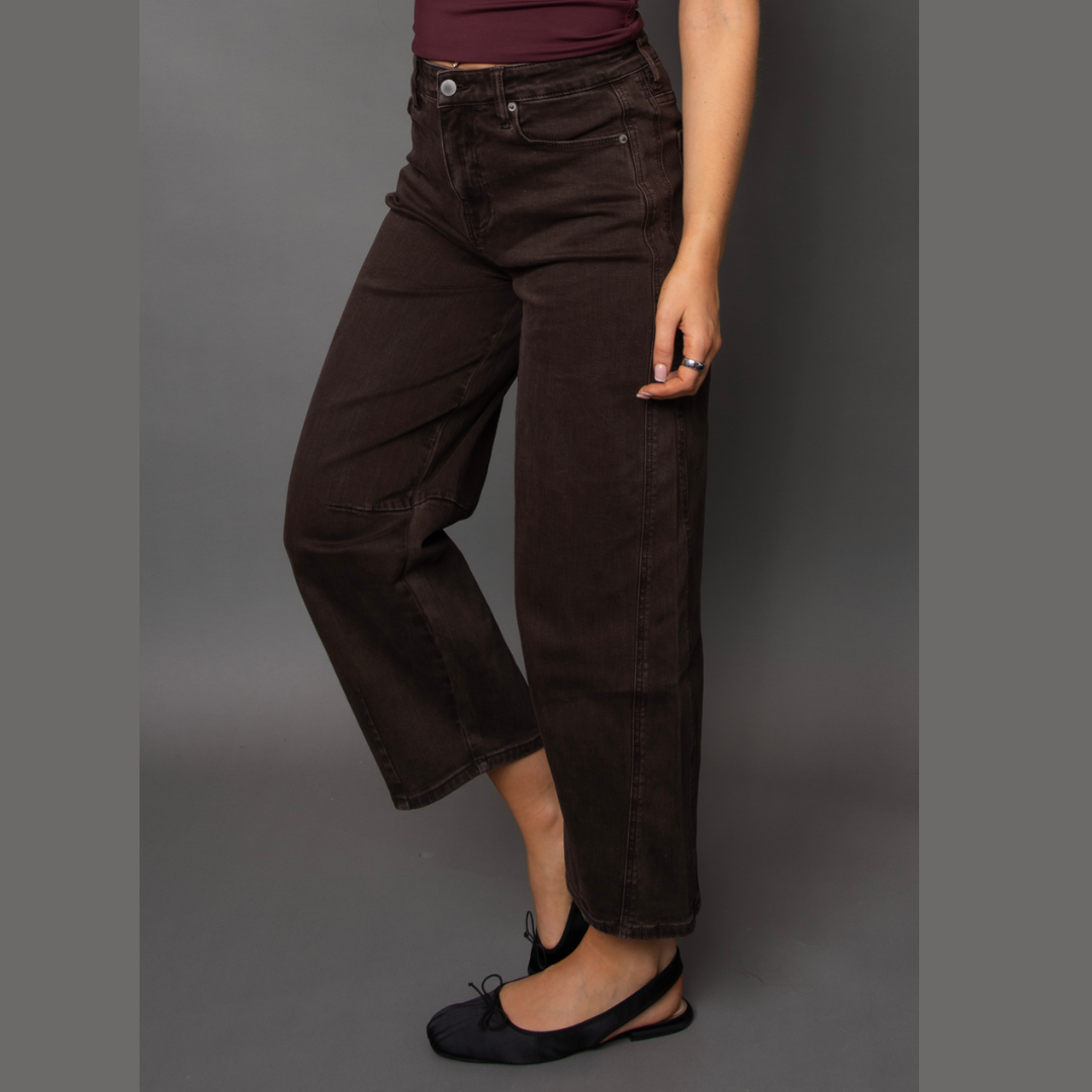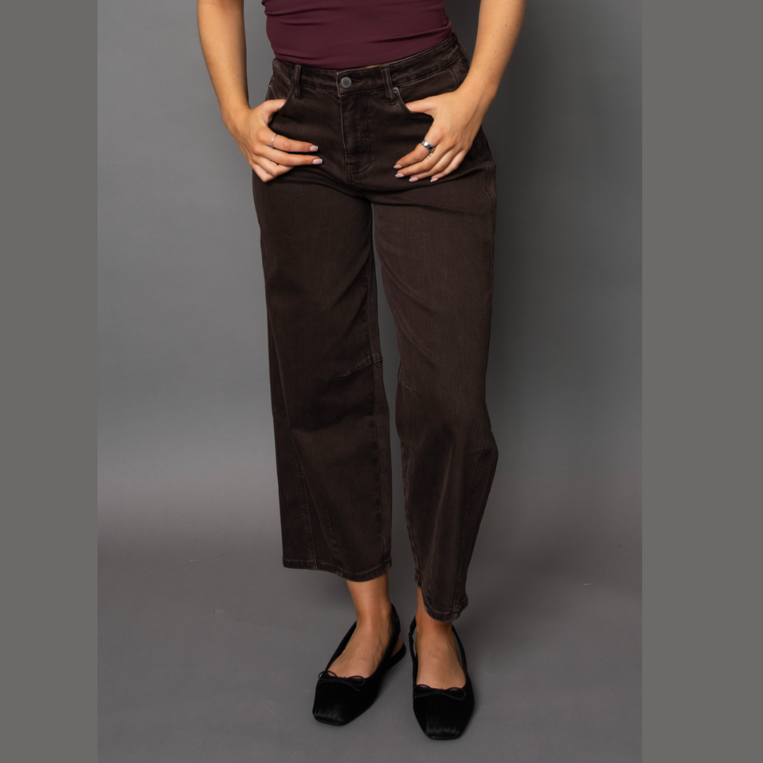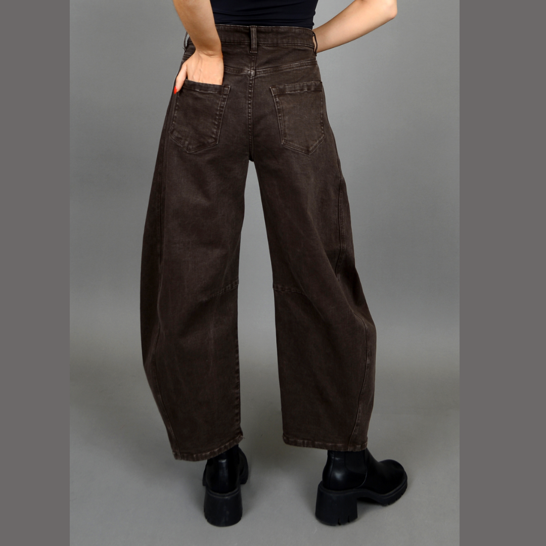 The softest and stretchiest barrell "denim" you'll ever own in the most beautiful fall chocolate color you ever did see.