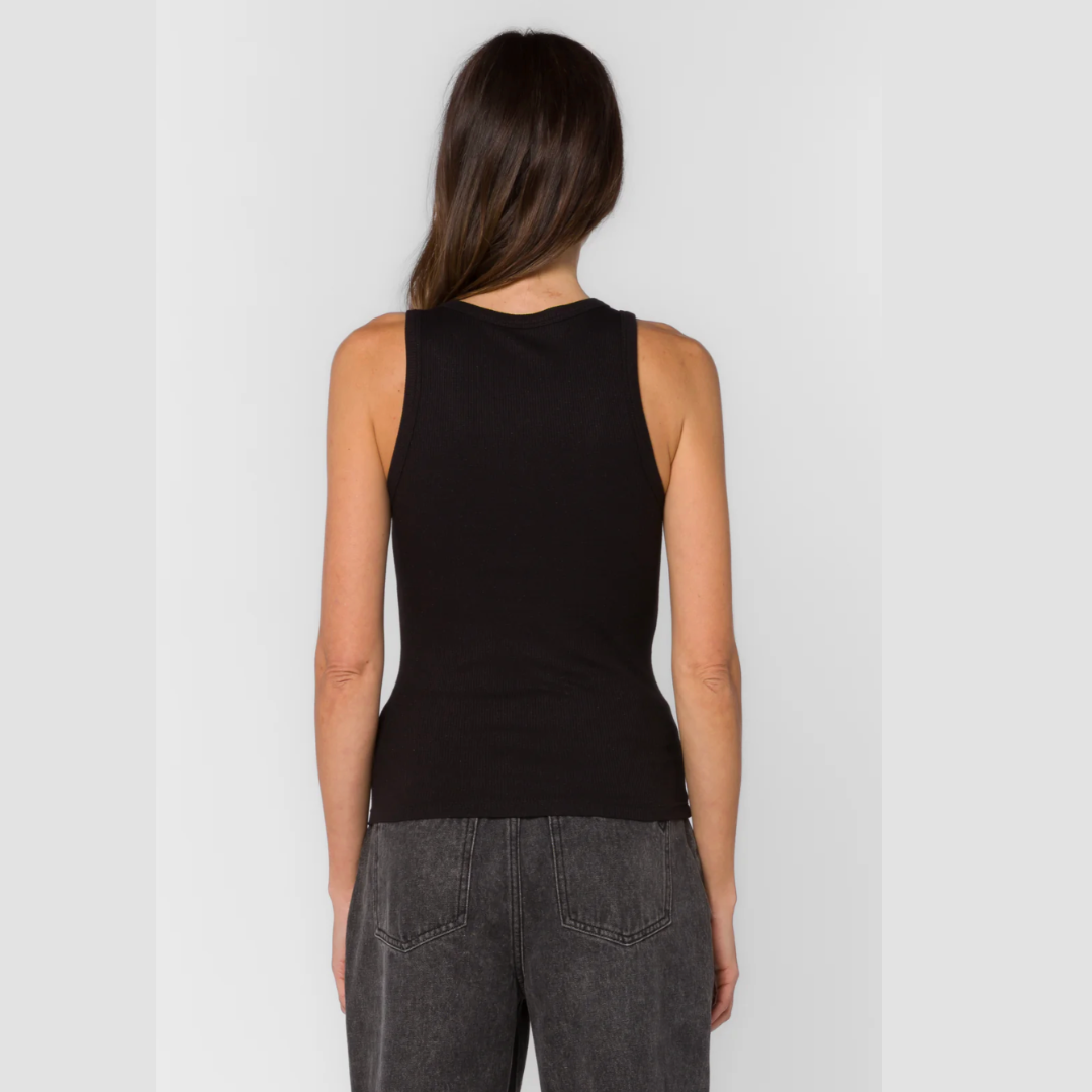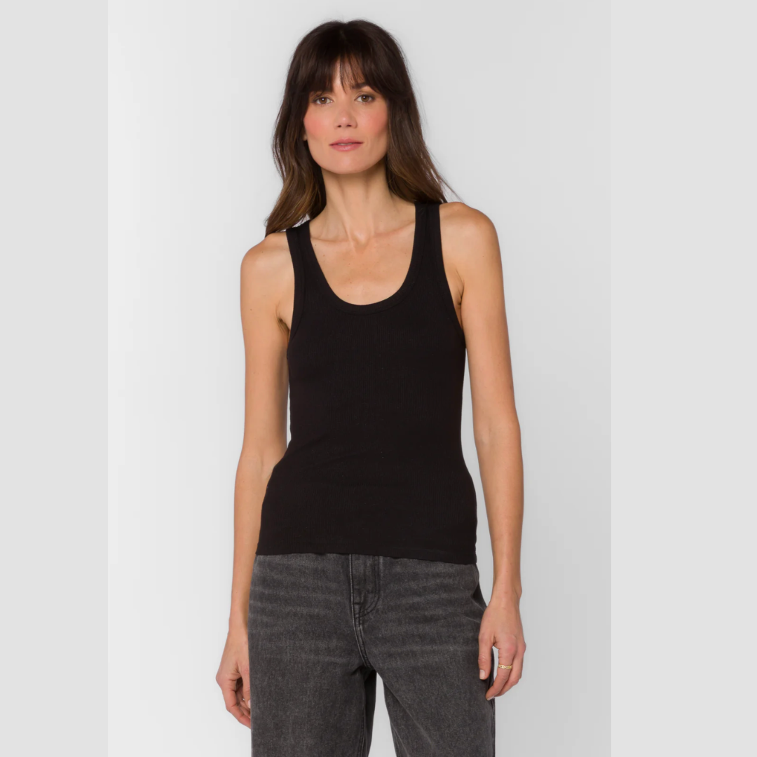 This scoop neck tank has a soft, body-skimming fit and a subtle shimmer accent throughout.