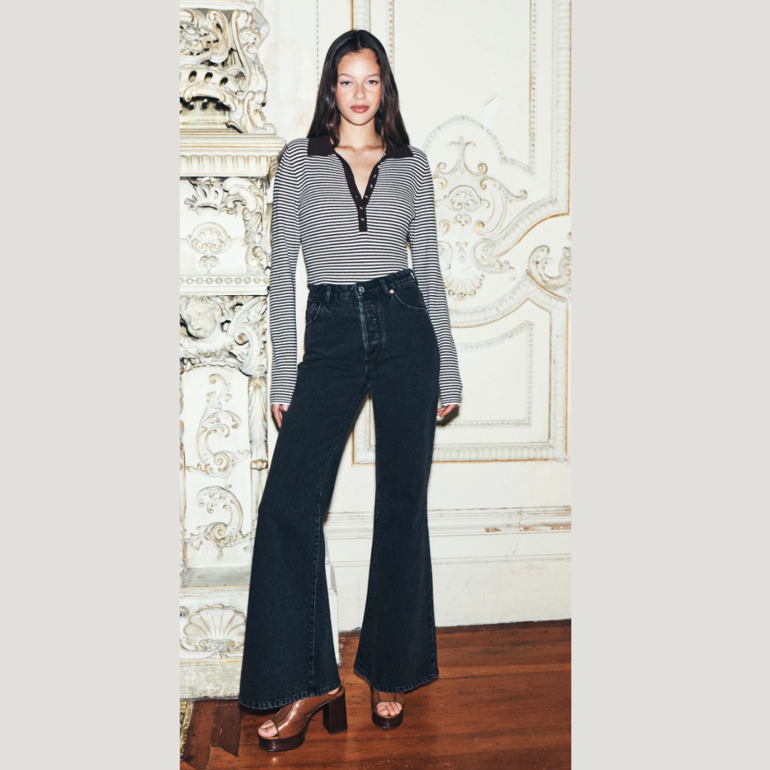 Hanna is 5'9" tall, wears a size 26 in jeans and a size S in tops