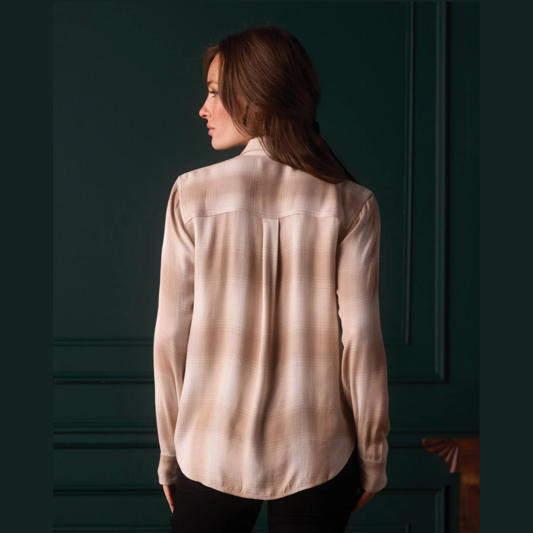 Meet Harper. Relaxed and drapey, perfect for casual wear. Made from 100% EcoVero Viscose, the fabric is extremely soft with a slightly brushed flannel texture and a subtle sheen. It features a relaxed fit that hits at the hip, 2 chest pockets, a shirt collar, front button placket, back yoke with box pleat, sleeve cuffs with vents, and a curved hem. Ideal for layering over a tee or under a jacket, it offers versatile styling for any casual occasion.