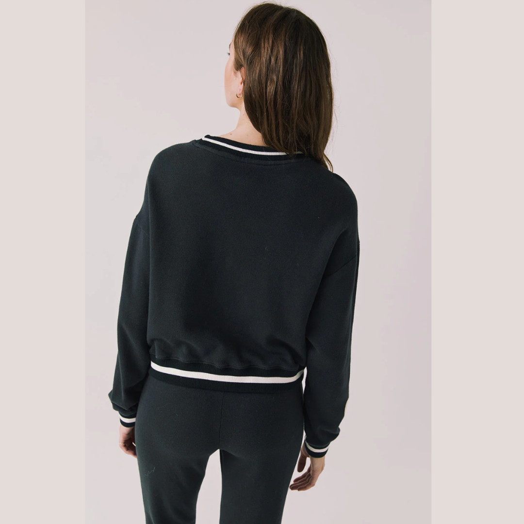 Bundle & Save for the perfect gift for you or someone you love. The Heart Ski Set captures authentic 70s slope style with coordinated pieces designed to work seamlessly together. The pullover features bold stripe accents on the hem and cuffs, while the matching joggers showcase sporty stripes along the waistline and cuffs. Crafted from 100% cotton, both pieces deliver comfort without compromising on vintage-inspired sophistication. The drawstring joggers offer an adjustable, laid-back fit that pairs perfectly with the long sleeve pullover, creating a polished ensemble ideal for casual weekends with understated edge. Model is 5'9" wearing size small.