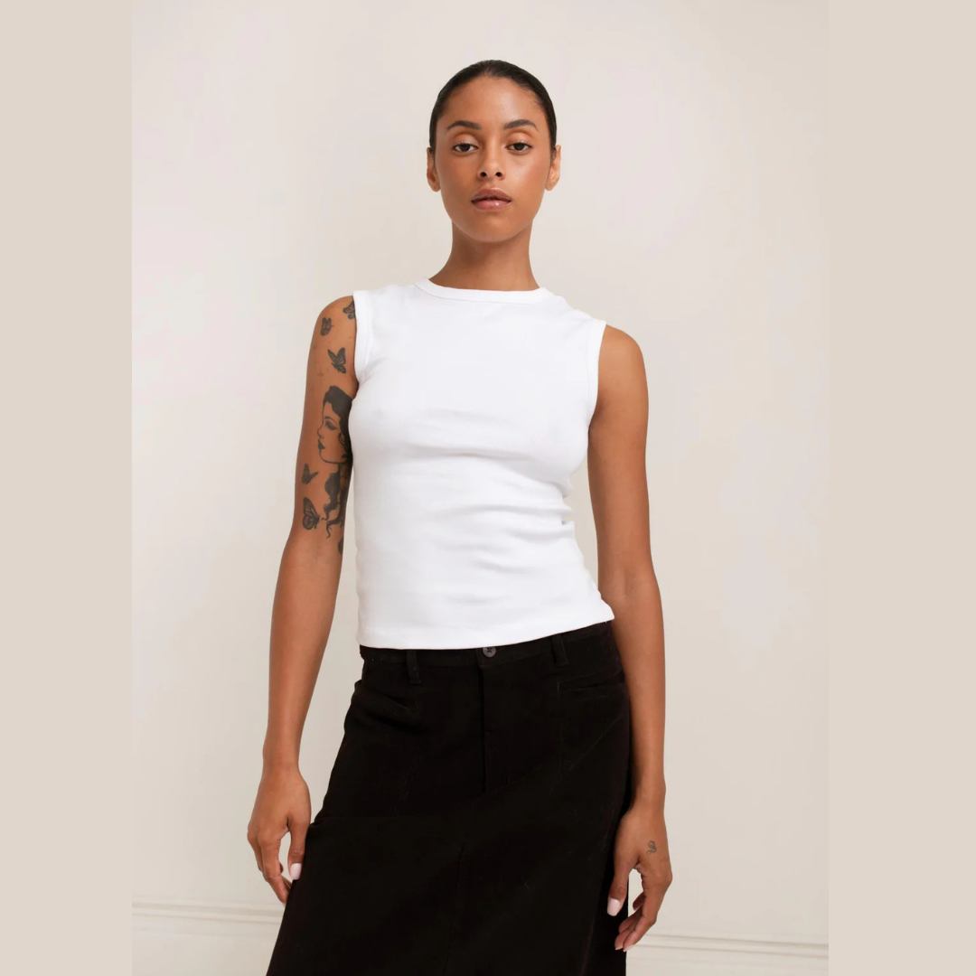 A subtle call-back to 90's coolness. The Lydia Tank reimagines the classic sleeveless top with clean lines and a streamlined shape. Its wide straps and mid-length hem make it ideal to tucked or untucked, layered or alone.
