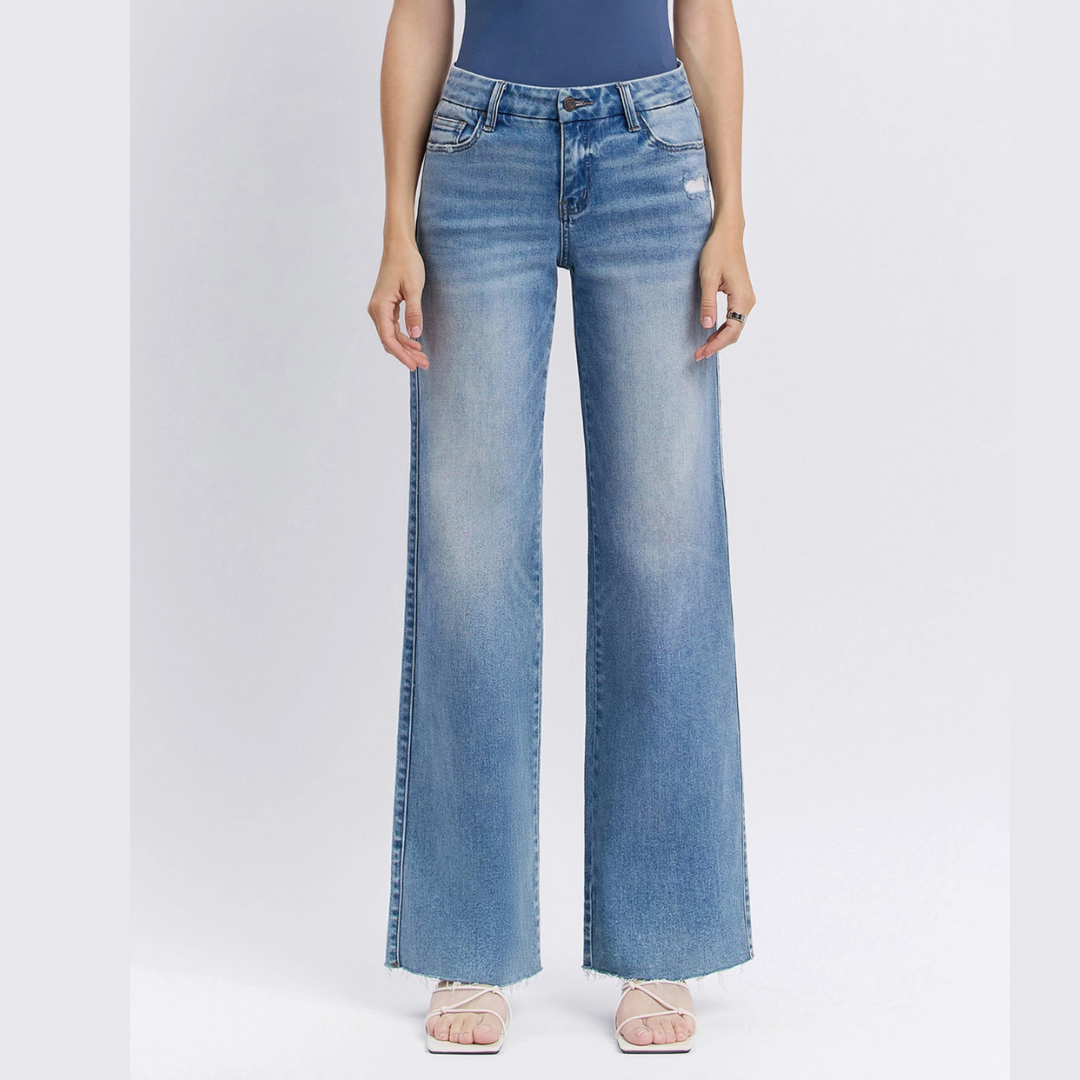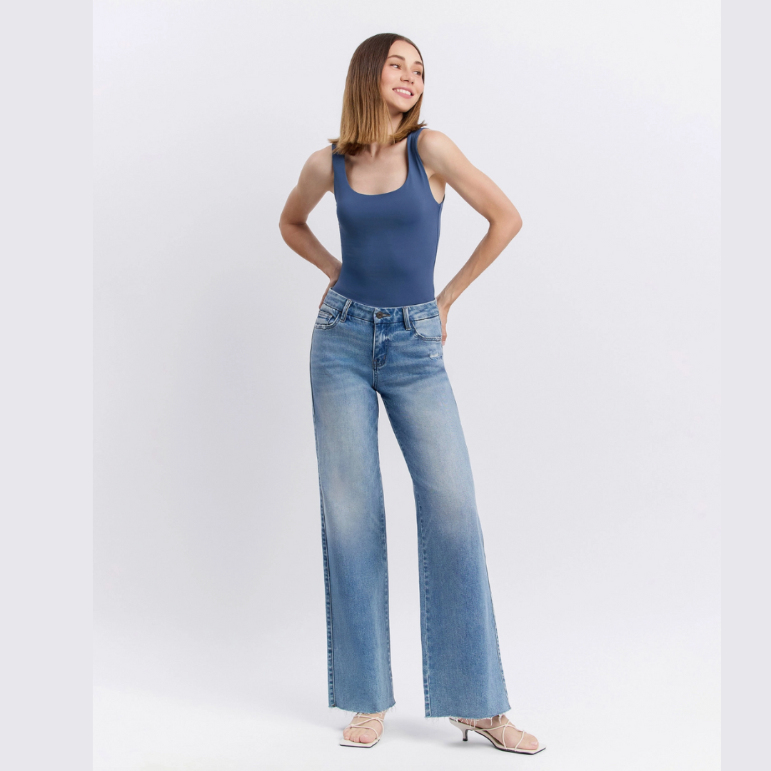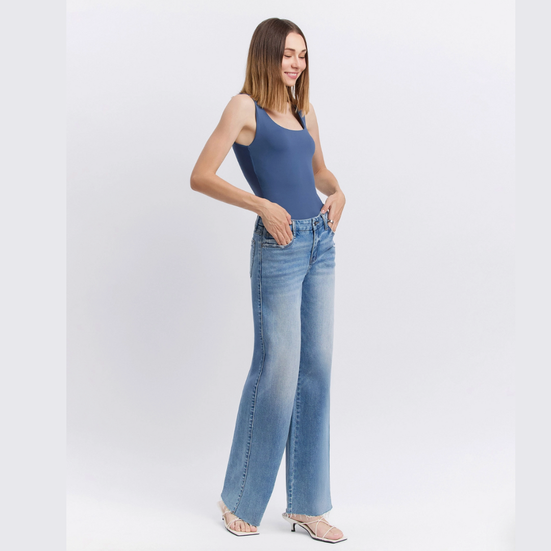 The Liv Mid Rise Clean Cut Raw Hem Wide Leg