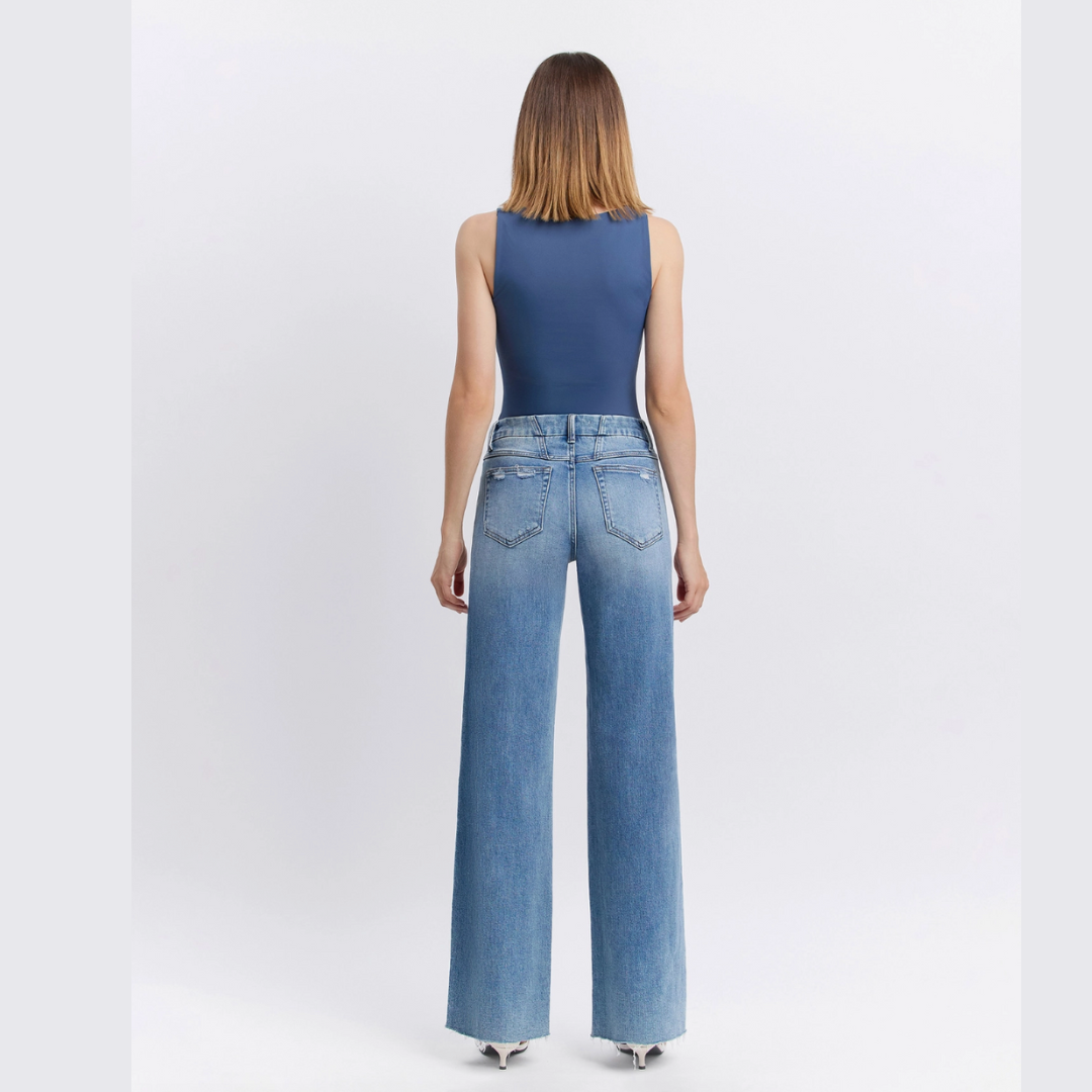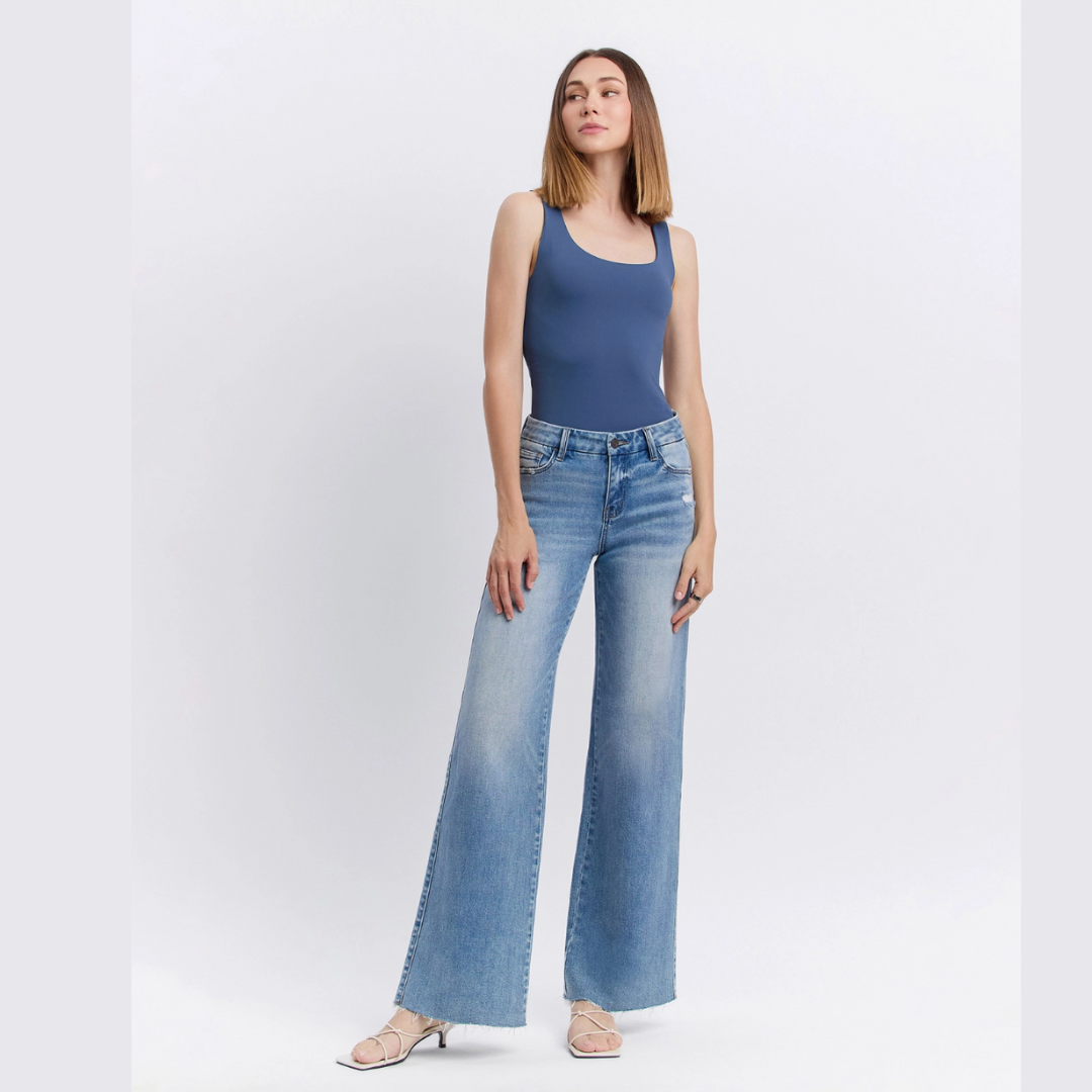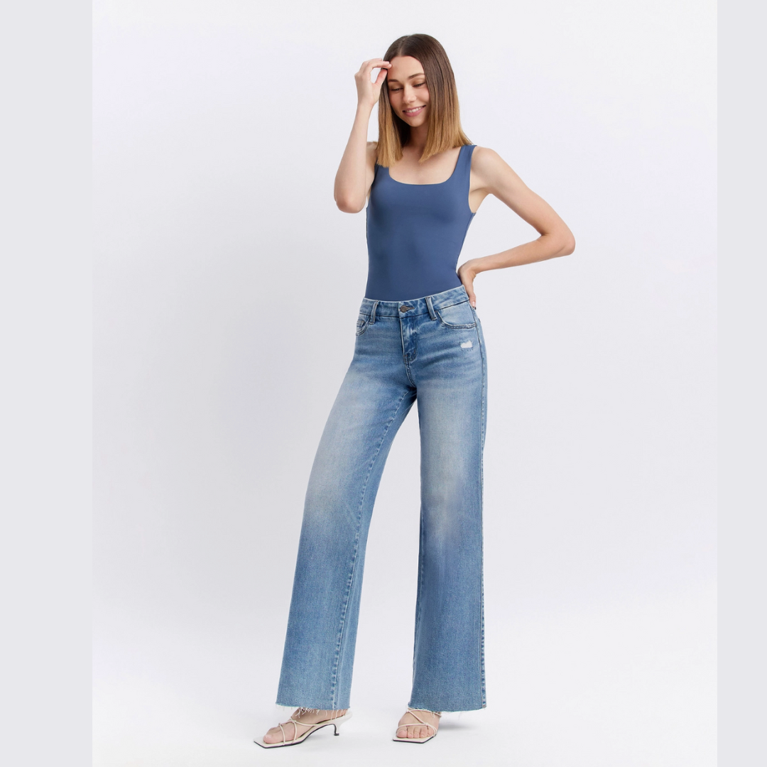 The Liv Mid Rise Clean Cut Raw Hem Wide Leg