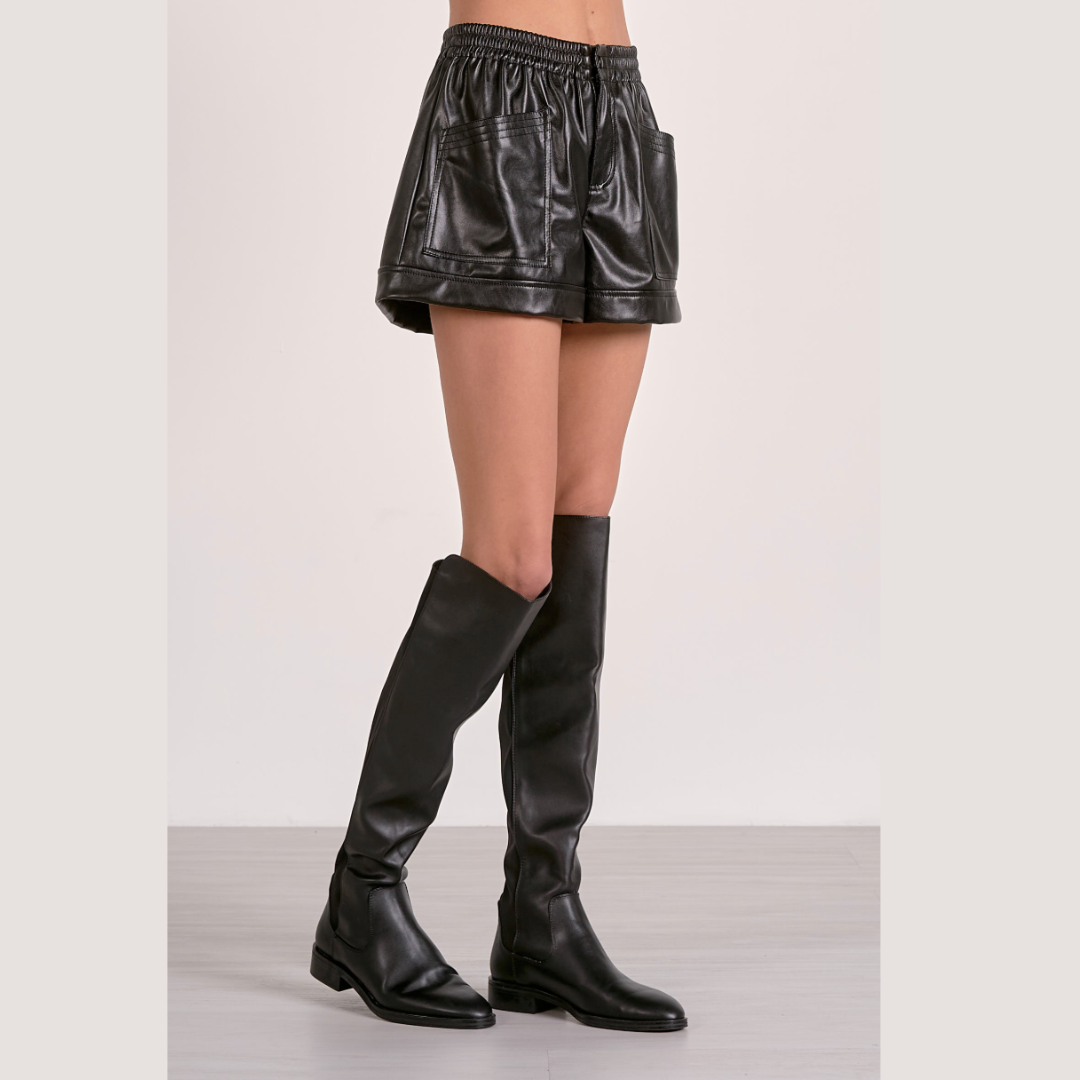 The On The Town Short returns for Fall 2024, crafted from high-quality vegan leather for a sleek, versatile look. Style them with high boots and bare legs for crisp days or layer with black tights or leggings to stay warm during chilly nights. Designed for all-season wear, these shorts quickly become a go-to favorite, combining comfort and edgy sophistication effortlessly. Perfect for elevating your night-out wardrobe while embracing sustainable fashion.