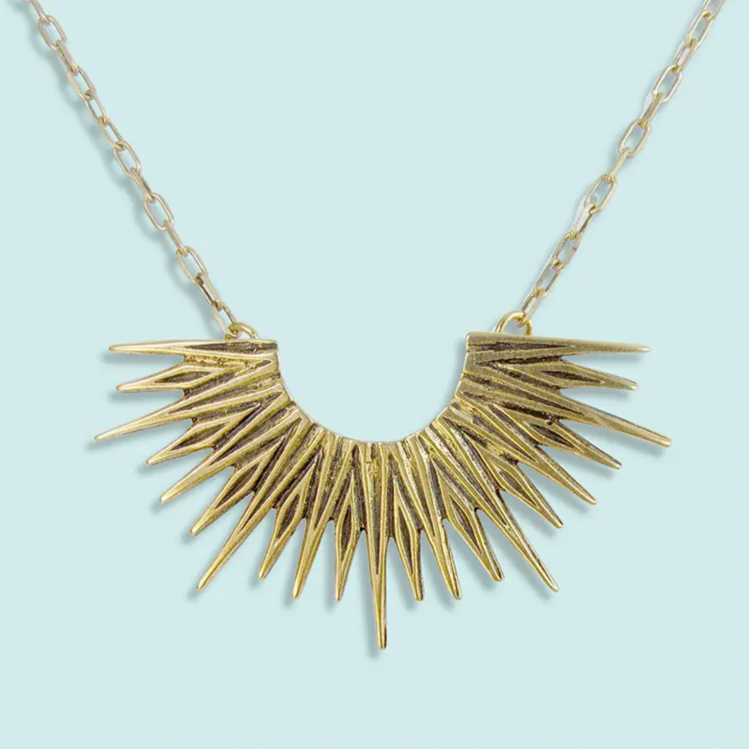 Metal: 24kt gold plate over brass Size: 2" W Pendant, 16" Chain adjustable 16-19" Lobster Clasp with 3 inch extender chain Made in the USA