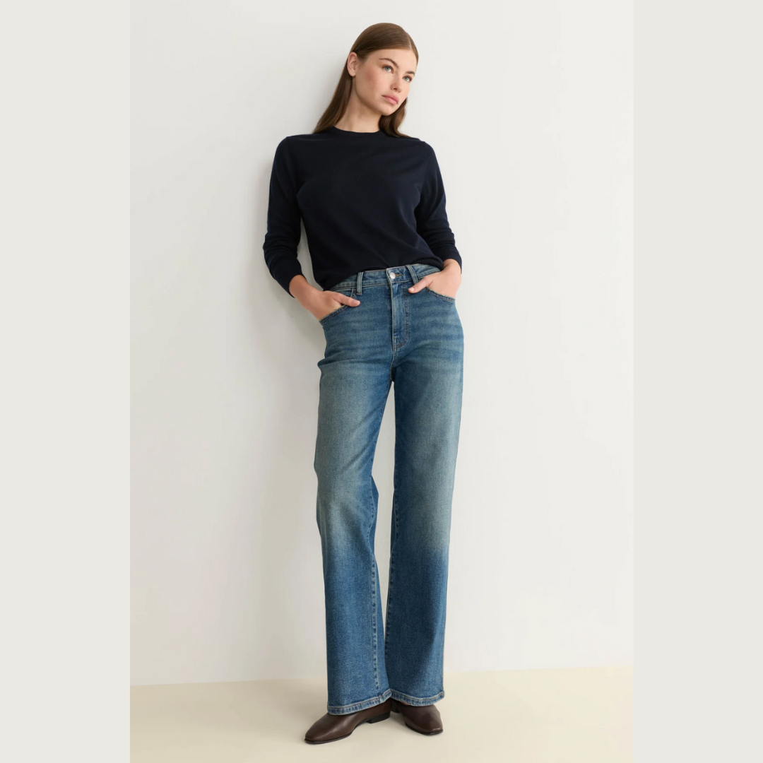 SAT is a high-rise straight jean that's a nod to the most-loved 90's denim style. Crafted with certified cotton and a hint of stretch, this 31" inseam jean looks vintage, but is made with way less water, dyes and chemicals than any other jean in your closet.