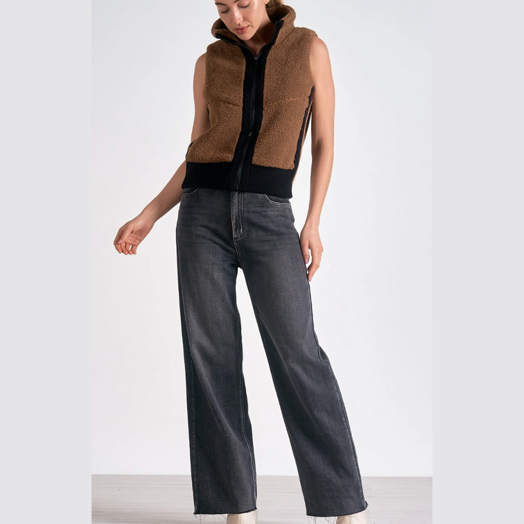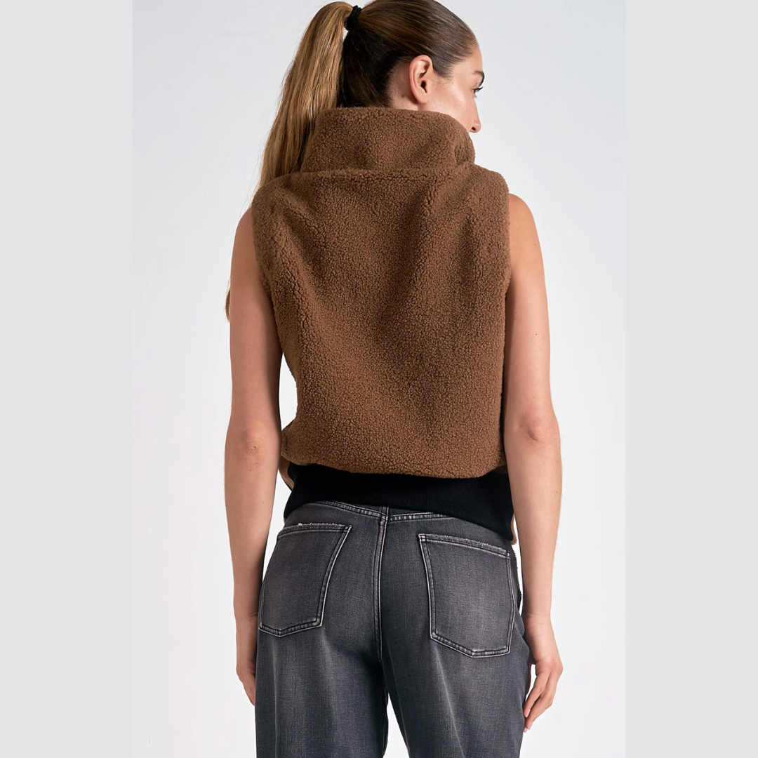 Wrap yourself in warmth with the Vancouver vest. This zip-up sherpa piece boasts practical pockets and bold stripe details, creating a functional yet stylish layer for cool weather adventures.